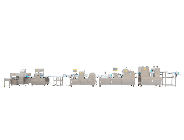 Main functions: the dough is rolled and extended by the surface pressing roller device, which makes the dough more glossy and more stable in quality. The roller has a thickness adjustment device to set the thickness of the surface to increase or decrease the weight of the product; By pneumatic or mechanical cutting device to cut the surface into finished products, at the same time punching the inner ring, release mold will not jam, cut out of the cake, tendon degree is stable. The operating system adopts PLC and touch screen operation is more convenient, imitation pure handmade, to ensure that the baking process of products is not affected, the appearance is neat, smooth, natural, beautiful, clear pattern.
