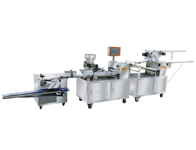 Compacting process can make dough slice brighter and finished product surface hecome more gloss and beautiful: handwork-imi-tating process brings out complete stripe refreshing slippery flavor; the thickness of skin and quantity of stuffing can be ad-justable; the major components are made of 304 stainless steel and the electrical components are world-famous brands; it is easyto operate for maintenance and dismounting; high-quality microcomputer control, humanized control panel can make the controlaccurate and reliable: higher degree of automation and accurate quantity determination can make the products have uniform sizethickness and shape of dough belt can be adiustedrequired: The unit can be operated by only one or two workers: diversifiecstreamed bun, steamed twisted roll, smashed bean bun, purple sweet potato roll.products can be made such as stuffed bun. squarepie and pumpkin cake.(nine-fold, ten-fold.twelve-fold and fifteen-fold type can be optional)